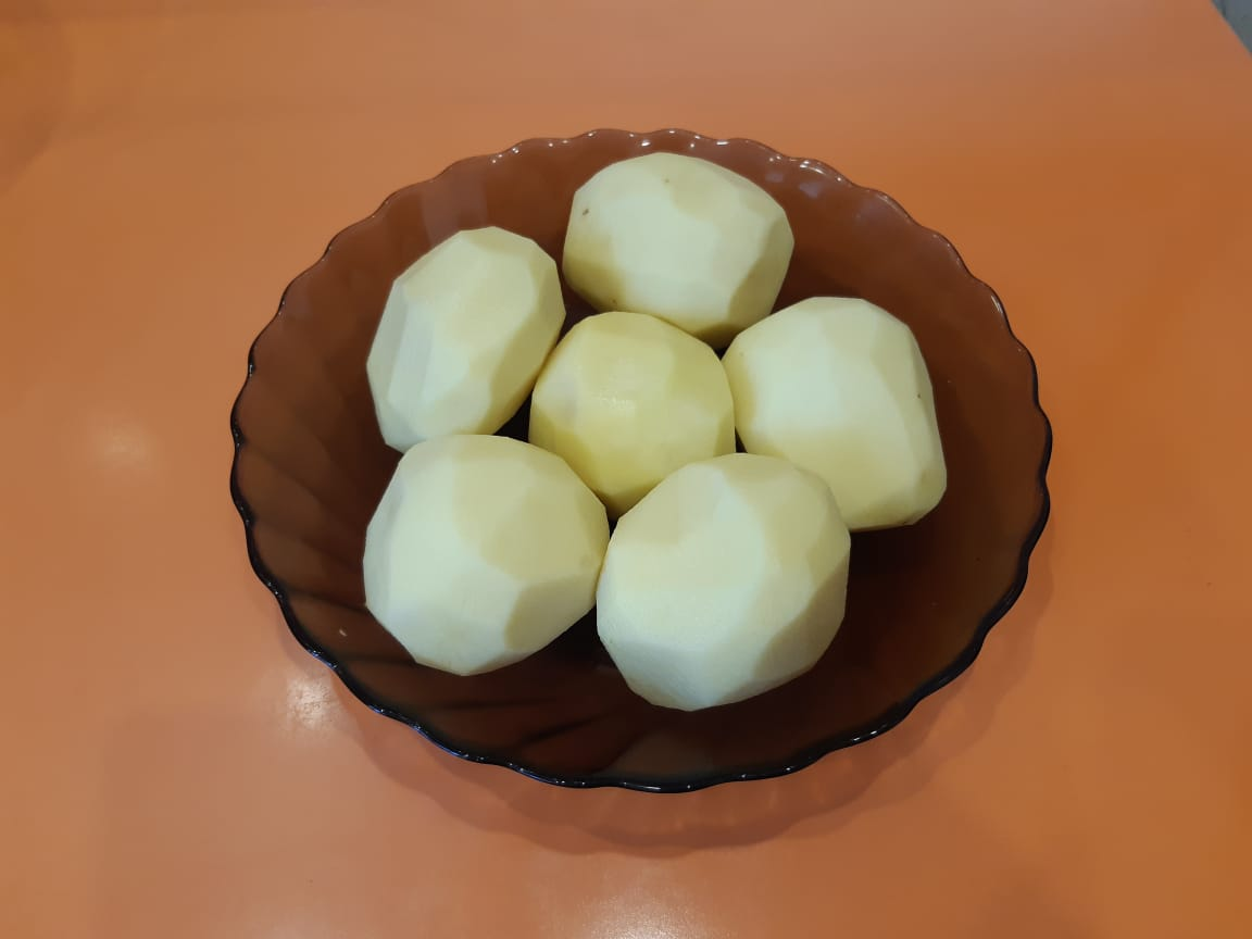 Я взяла 6 средних картошек, вес которых составил 595 гр, после того, как я их очистила.