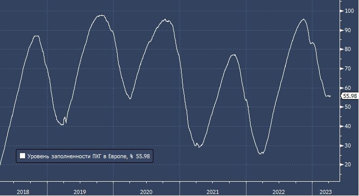 Уровень запасов в ПХГ на конец сезона является максимальным, как минимум за последние 10 лет. Динамика уровня заполненности хранилищ газа в Европе, % от максимального уровня. По данным Morgan Stanley, Европе требуется наименьшее количество природного газа за десятилетие для пополнения своих хранилищ, а это означает, что в этом году запасы могут пополниться намного раньше, чем обычно. Запасы могут быть заполнены на 100% к концу августа — задолго до того, как начнется отбор из ПХГ (обычно расход газа их ПХГ приходится на конец октября). Расчеты подразумевают, что спрос на газ будет соответствовать недавним значениям (слабый спрос), а поставки сжиженного природного газа будут сохраняться в прежнем объеме, отмечают аналитики банка. «В ближайший летний сезон загрузки хранилищ выглядят менее сложными, чем в прошлом году, даже с учетом отсутствия поставок газа из России в течение всего предстоящего лета», — считают аналитики Morgan Stanley. Энергетический кризис в Европе быстро сходит на нет,