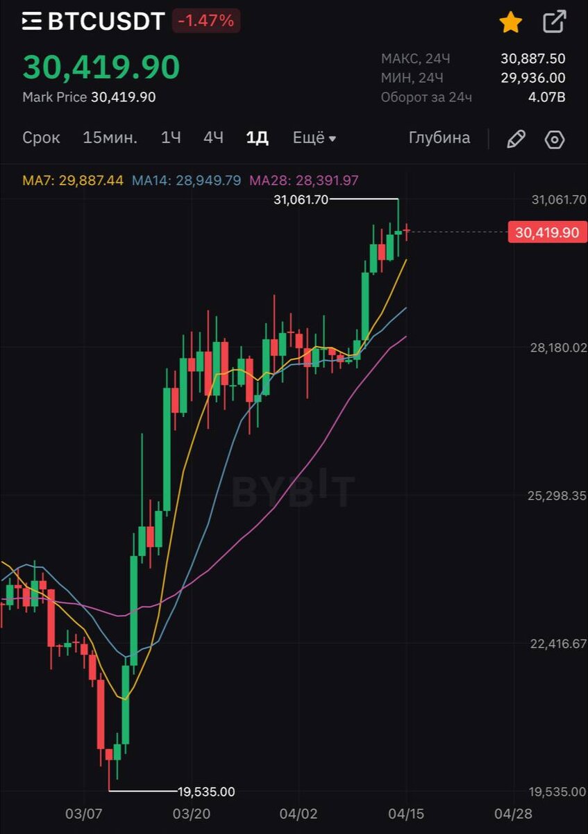 ✅ BTC торгуется на 30.400$. Что дальше? Актив вырос за неделю на +9% и уверенно закрепился выше 30к. На фоне, понемногу начали отрастать все альты: тот же Эфир подтянулся на +13% и также торгуется выше 2000$. Что дальше? Есть несколько вариантов: 1️⃣ Сценарий роста на 32к и выше - остаётся в силе. Это возможно, так как пробили важную психологическую отметку в 30к и держимся выше нее уже несколько дней + согласно опросам (более 50% криптанов) до сих пор не доверяют этому росту и сидят на измене в ожидании слива. Поэтому, для увеличения эйфории и безопасности, нужно постепенно расти дальше - чтобы превратить злых медведей в счастливых хомяков)) 2️⃣ С другой стороны: альтсезон. Многие уже начали зарабатывать на альтах: ARB и INJ дали +40% за неделю, ОКВ дает +20% за сегодняшнюю ночь, и даже проект SUI, сегодня ночью анонсировал лаунчпады на биржах (торопятся?).. многие трейдеры считают, что сейчас мы уже выходим на финальную стадию перед “контрольным в голову”. BTC будет стоять на