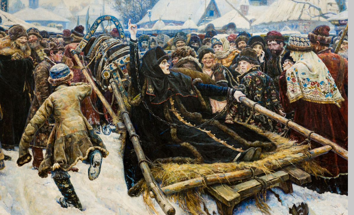 Картина "Боярыня Морозова", написанная Василием Суриковым в 1887 году, - не просто величайшая картина русского искусства (рядом с ней лишь "Смерть комиссара" Петрова-Водкина), но одна из величайших картин мировой живописи. Легко заметить, как и в чем перекликаются "Боярыня Морозова" и "Смерть комиссара": обе картины изображают гибель непобежденного, неизбежность долга и неотвратимость пути. Есть еще одна рифма в мировом искусстве, которую Суриков - возможно, безотчетно - сохранил в своем полотне. Речь о Теодоре Жерико и Эжене Делакруа, картины которых Василий Иванович Суриков видел в Лувре. Обе вещи - "Плот Медузы"(1819) и "Свобода ведет народ"(1830) сходны меж собой как схожи "Боярыня Морозова" и "Смерть комиссара"; Делакруа изображает баррикаду как плот, а Жерико изображает плот - как Францию. Теодор Жерико, рисуя "плот Медузы", изобразил крушение Франции, причем не только Империи Наполеона Первого, но и концепции республики; впрочем, сохранил надежду - среди умирающих на плоту, ест
