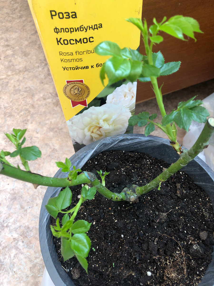Дорогие друзья и гости канала! Рада всем кто заглянул ко мне на огонек! Погода дает нам шанс на подробное знакомство с розами. В саду при температуре -6, делать нечего. Мы все и розы тоже, в том числе, ждем стабильного тепла. Нужно насладиться дополнительными выходными днями. Дома всю работу сделали вчера, а сегодня мы продолжим просмотр роз на передержке. Эти розы уже посажены в горшки по разным причинам. Напомню, что куплены они были 4 февраля. Роза Космос тоже была в холодильнике, у нее быстро проснулись сразу пять почек, при небольшом корешке, я решила посадить ее. Корни могут не справиться с надземной частью, обеспечивать их в полную силу. Но она своенравная, космическая натура не послушная, мы можем только наблюдать, я конечно ей помогаю. Часто опрыскиваю, стимулировала, первое время она стояла у меня полностью в пакете. Сейчас все зависит от нее. На фото роза Космос цветет, согласитесь как миленько она смотрится. Дорогие Шестая у нас роза спрей Лидия Вайт, все помнят ее слома