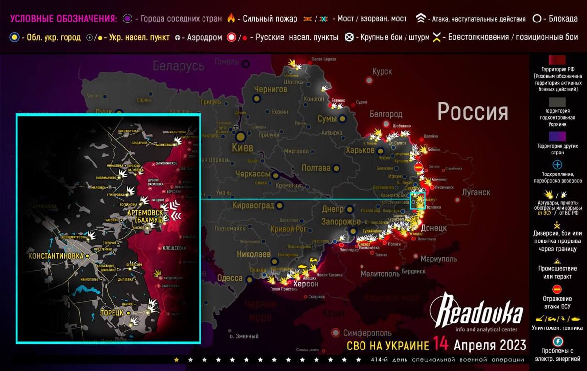 Карта военных действий и ситуация на фронтах вечером 14 апреля