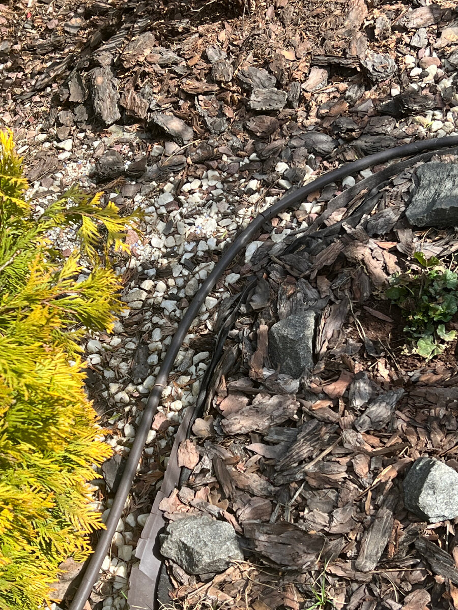 Как я радовалась, когда купила этот бордюр - Кантри. Решила, что проблема с клумбами решена! Но рано радовалась. Первые годы бордюр смотрелся отлично. Но потом, когда несколько раз за сезон его задели газонокосилкой, жара и мороз тоже сделали свое дело. И бордюр стал вот таким Верхний борт сам по себе. Отошел от основной части, которая просто растрескалась и пришла в негодность А корни елок просто выдавили его местами из земли. И вкопать его обратно уже не возможно. Бесил он меня пару лет Где-то вкопан как новый, а где-то уже никакой и форма рокария потерялась, стала не красивой А вкапывала везде одинаково, долго и мучительно. Но корни выдавили половину наверх. В общем не красиво, да и развалился весь он. Срок службы у него не большой. В землю крепили его специальными длинными «якорями». Вот такими И вот, наконец, наши очумелые ручки с дочкой решили все это заменить, а достаточно дорогой бордюр НА ПОМОЙКУ. Купили за копейки на местном рынке брусчатку и за день выложили заново весь рок