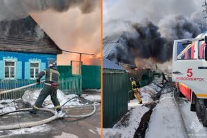 В Заельцовском районе Новосибирска сотрудники МЧС потушили крупный пожар в частном доме на 2 хозяев и 2 гаражах на улице Уфимская, 50. Обоих хозяев в момент пожара дома не было. «Горят два гаража( два металлических, размером 6*6 каждый) ,горит кровля частного дома, была угроза рядом стоящему дому», — сообщает МЧС. Здание загорелось около 9 часов утра 15 апреля. Уже к концу часа его удалось потушить. Уточняется, что дом одноэтажный и выполнен из бруса. Также он обшит пластиковым сайдингом. Огонь начал распространяться с надворных построек. Ранее НДН.инфо писал, что два частных дома загорелись в посёлке Садовый под Новосибирском. Существует угроза перехода огня на соседние строения. Дмитрий Кузнецов