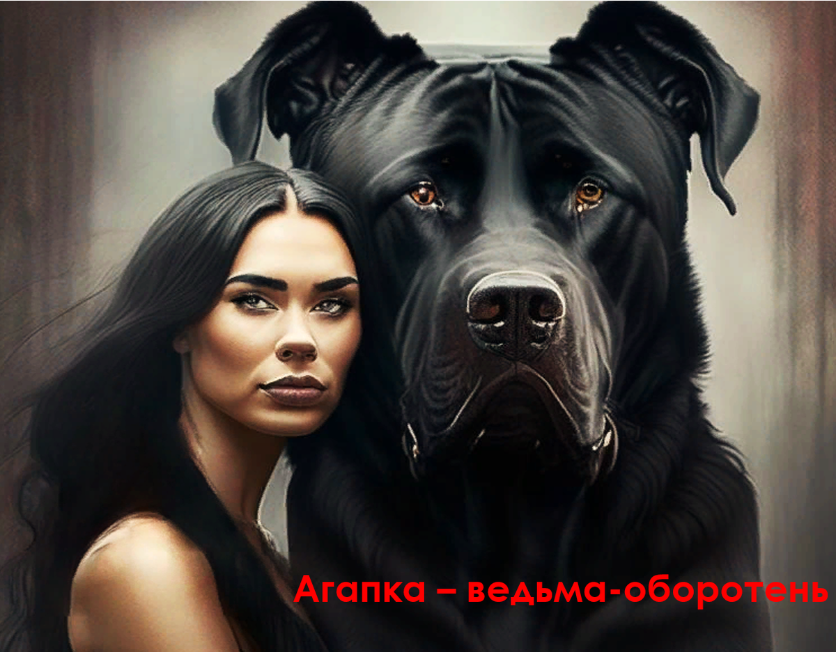 Но никто не желал выходить за собственной погибелью. Видят люди, а Агапка-то день ото дня изменяется прямо на глазах: стареет, черные волосы сединой покрываются, когда-то красивое лицо глубокими морщинами покрылось, тело ссохлось, спина сгорбилась. Все быстрее она мечется по улицам, рыщет аки пёс голодный. Вскоре и вправду обратилась в огромного черного пса. Значит Агапка не простая ведьма, а ведьма-оборотка.