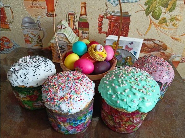 Для многих Пасха - любимый праздник с детства . Помню до сих пор, какие бабушка пекла куличи, украшенные взбитым белком. Мы любили ее пирожки с калиной, рулеты с маком и куличи, которые всегда стояли в сенцах перед праздником. А мы не могли удержаться от того, чтобы не отколупать кусочек глазури, за что потом могло влететь от взрослых. Сейчас, когда в магазине глаза разбегаются от изобилия куличей и так и хочется все попробовать, не всегда пекутся куличи дома, но так делают не все. У многих есть свои фирменные рецепты приготовления куличей, которыми они иногда делятся с другими. передаются друг другу. Я в этом году просто купила кулич в магазине, а когда мне накануне праздника прислали фотографии пасхальных куличей, испеченных родственниками, по одному рецепту, захотелось взять этот рецепт и может быть, на следующий год у меня тоже получится такая красота! Делюсь этим рецептом, в том числе и для того, чтобы не потерять его. РЕЦЕПТ ПРИГОТОВЛЕНИЯ КУЛИЧА. 600 г муки п