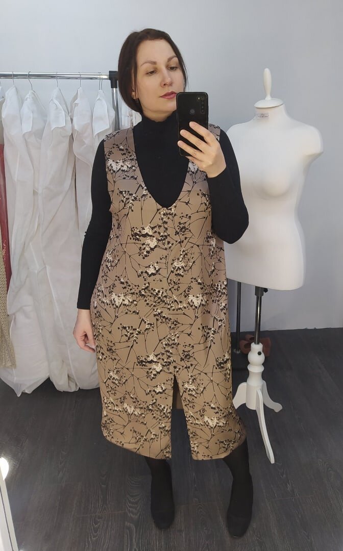 Совсем забыла одну из последних работ показать в деле, так сказать. А точнее - на фигуре. Здесь писала об этом платье: Это платье - часть проекта Умный гардероб, который я создаю как промышленную коллекцию повседневной одежды, и вещи-образцы шью отчасти для себя, отчасти для наличия. Ну и показываю их в разных вариантах, как и куда можно надевать. Подробно о проекте можно почитать в этой статье: Итак, в нашем распоряжении сегодня - платье в бельевом стиле, из шифона, на подкладке, с разрезом выше колена по низу спереди и глубоким вырезом горловины. Последнее важно, потому как платье подразумевает ношение в комплекте с чем-то ещё, если хочется, выглядеть прилично)) Так сколько образов можно с ним собрать? Например, первый вариант - абсолютно жизненный: базовая черная водолазка, платье и плотные черные колготки. Подойдет и для работы (если нет фирменного дресс-кода), и досуга (прогулки по городу, поход в кафе, кино, шоппинг и т. д.) Второй - базовая майка и платье, выглядит более в