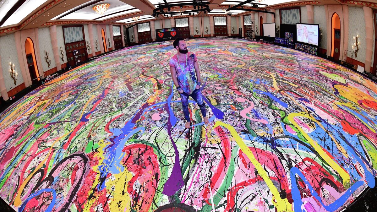 Сколько стоит самая дорогая картина в мире и существует ли её антипод - самая дешёвая картина? Как появились полотна, признанные самым большим и самым маленьким? Ответы вы сможете узнать из нашей сегодняшней статьи :) Приятного чтения, дорогие любители искусства! Она называется "Путешествие человечества", и её автор - современный британский художник Саша Джафри. Размер картины составляет 1595,7 квадратных метра; представьте себе четыре баскетбольные площадки, составленные вместе, и это будет примерный размер этой картины. У "Путешествия человечества" интересная история: замысел возник у Джафри во время пандемии ковида и локдауна, который Джафри провёл в отеле Atlantis The Palm в Дубае. Тогда художник задумался о том, как пандемию воспринимают дети (ну, со взрослыми-то всё было понятно и так) - и он попросил ребятишек со всего света отправить ему рисунки со своими впечатлениями. Неожиданно для себя Джафри получил огромное количество откликов: ему отправили рисунки дети из более чем 14