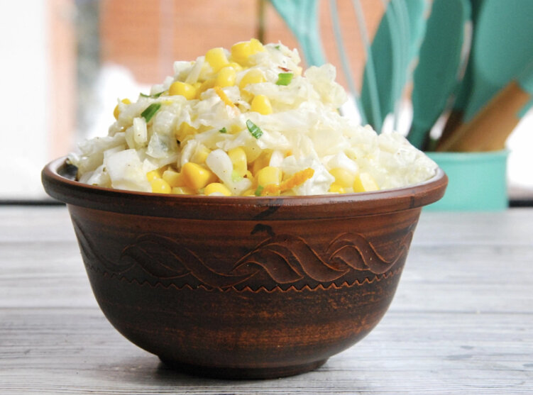 Этот рецепт понравится тем, кто любит легкие закуски. Готовим несложный салат из пекинской капусты без слишком калорийных заправок. Понадобится следующее: Пекинскую капусту нарезаем тонкой соломкой. Понадобится примерно половина среднего кочана. Добавляем к капусте половину банки консервированной кукурузы. Ее можно заменить свежим болгарским перцем, нарезанным небольшим кубиком. Здесь важно, чтобы ингредиент обладал умеренной сладостью, чтобы сбалансировать вкус салата. Мелко нарезаем одно-два пера зеленого лука. Теперь делаем заправку: 1 столовая ложка растительного масла + сок и цедра половины небольшого апельсина + сок и цедра дольки лимона. Заправляем салат, добавляем по вкусу соль, черный и острый красный перец. Все перемешиваем и подаем! Вкусный и ароматный салат! А главное — довольно легкий.