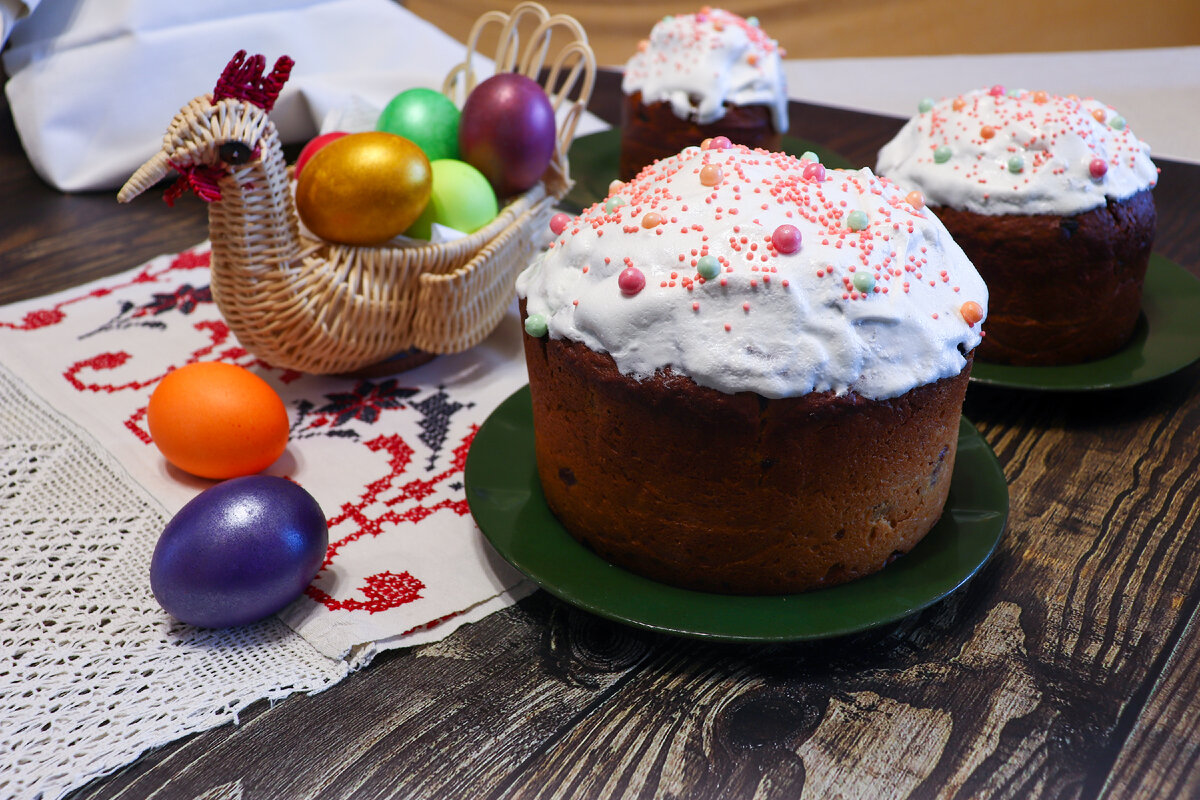 Мука пшеничная – 500 г Дрожжи – 30 г (или 10 г сухих) Сахар – 120 г Молоко – 200 мл Масло сливочное – 350 г Соль – ½ чайной ложки Цедра апельсина – 1 столовая ложка Яйца – 5 шт. Изюм – 150 г Сахарная пудра – 200 г Мускатный орех молотый, кардамон, шафран – по вкусу Приготовление: 1. В глубокую миску просеять 250 г муки. Добавить дрожжи, 1 ст. ложку сахара, тёплое молоко. Накрыть полотенцем и оставить опару на 20 минут в тёплом месте. 2. У 2 яиц отделить белки от желтков. Белки убрать (для глазури), желтки поместить в глубокую миску, где будем замешивать тесто. 3. В миску добавить оставшиеся яйца, сахар, соль, апельсиновую цедру, пряности (мускатный орех, кардамон, шафран), размягчённое сливочное масло. Всё взбить. 4. Добавить в тесто опару (должна подняться и увеличиться в объёме) и оставшуюся муку. 5. Промыть изюм горячей водой, дать стечь, добавить в тесто. 6. Тесто тщательно вымесить, накрыть полотенцем и оставить в тёплом месте на 30-40 минут. 7. Выложить тесто в форму для запекани