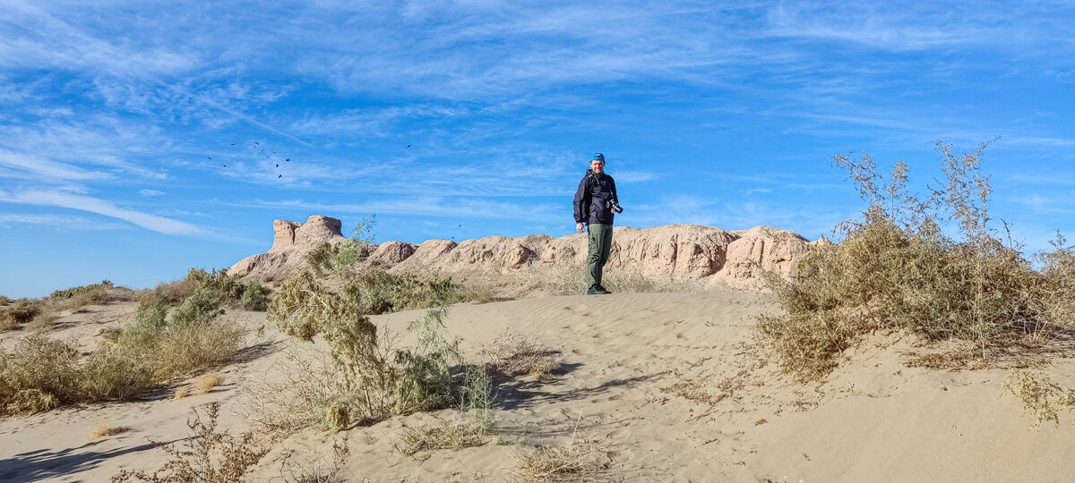 Теперь советы от меня. Берите в пустыню Каракалпакстана удобную обувь, которая испачкается пылью и забьется песком. На всякий случай маску и очки (черные), не из-за короны, а из-за жестких ветров. Вероятно, их буйство зависит от времени года.