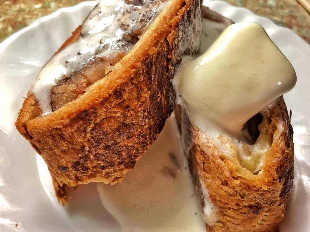 Берём яблочки спелые и сладкие, благо осенью этого добра навалом. Ещё берём горсть орехов грецких, сахар и корицу, ну и без теста слоёного дрожжевого не обойтись. Яблочки обработать надо, убрать кожу и сердцевину, нарезать на небольшие кусочки и смешать с измельченными орешками. Затем засыпаем всё сахаром и корицей, перемешиваем и даём часок постоять. А теперь самое главное! Обычно для этого используют простые панировочные сухари, но мы же с вами ситхи, поэтому у нас есть печеньки '' к кофе''! При помощи силы, смело крошим их в начинку! Это нужно, чтобы штрудель не раскис от яблочного сока и остался хрустящим)) Начинаем собирать пирог Раскатываем тесто, промазываем растопленным сливочным маслом и заворачиваем в него начинку, так чтобы она оставалась по центру (как любимую шавуху). Накалываем зубочисткой дырок и смазываем смесью желтка и сливочного масла. Выпекается сие чудо около часа при 180 градусах на режиме верхнего и нижнего нагрева без конвекции . Ну и конечно при подаче не за