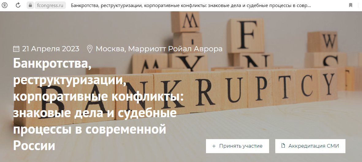 Конференция Forbes по банкротствам, реструктуризации и корпоративным конфликтам, 21 апреля