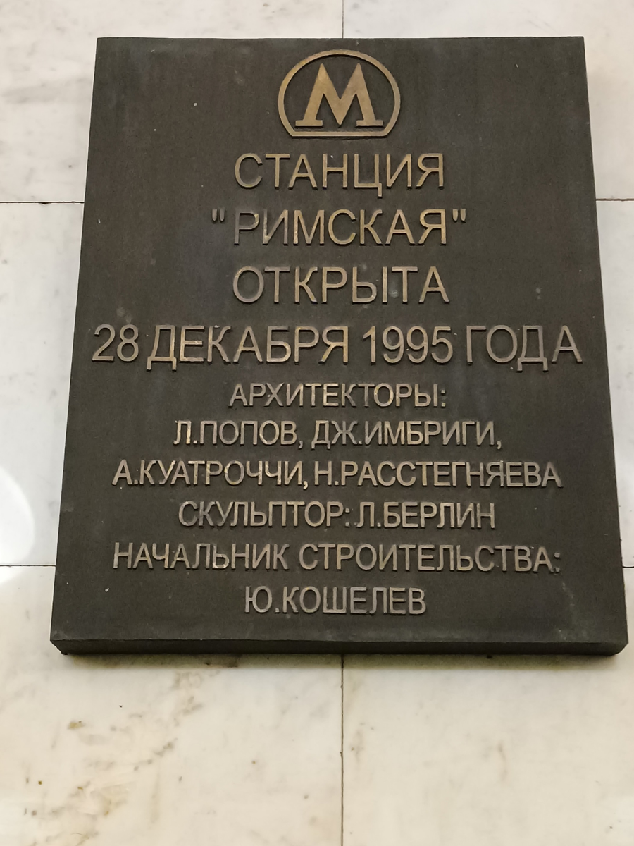 Я почему-то думала, что станция Римская очень старая, а вчера побывала там, делала пересадку с желтой ветки на зеленую, и обратила внимание на табличку - оказывается она открыта в 1995 году - совсем молодая по меркам метро. Когда переходишь со станции Серп и Молот на Рижскую, встречаешь интересную скульптурную композицию, это две фигурки младенцев — Ромула и Рема, будущих основателей Рима. Какие-то они конечно странные, одутловатые какие-то, не слишком натуральные. Но это же искусство, каждый понимает как может. Фигурки детей отлиты из фарфора. Эта скульптурная композиция интересна тем, что является самым глубоко расположенным памятником. И еще за фигурами по стене течет вода, и это единственный фонтан московского метрополитена и одновременно самый глубокий фонтан в Москве. Почему станция носит такое название и почему на ней размещены эти фигуры не ясно. В сети я нашла несколько предположений, но ни одно из них официально не подтверждено. Колонны очень красивые, нарядные. Сама станци