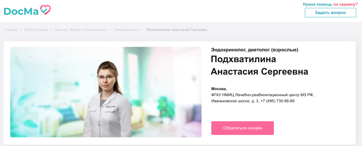 Ссылка для записи - https://doctor.docma.ru/podhvatilina#online