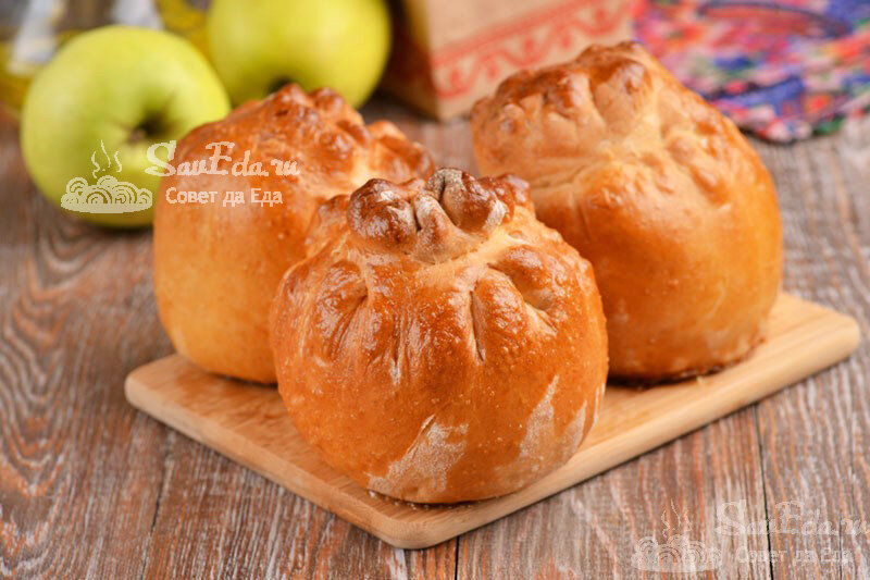 Очень люблю такие яблоки в тесте. Внутри они очень нежные и сочные, а сверху покрыты красивой хрустящей корочкой. Это просто наслаждение. Это блюдо из моего детства, бабушка часто пекла яблоки в тесте в русской печи. Вкус и аромат их помню до сих пор. Для яблок замешиваю очень простое и вкусное дрожжевое тесто на воде без яиц. Порции 5 Время приготовления 2,5 часа Ингредиенты Для теста: Для начинки: Для изделий: Инструкции 1. В миску отправляем муку, сухие дрожжи, соль, сахар и перемешиваем. Для замера муки и воды использую стакан объемом 250 мл. 2. Вливаем теплую воду (около 40 градусов) и перемешиваем ложкой. 3. Добавляем растительное масло. 4. Замешиваем тесто кулаком 5-7 минут. Тесто липкое. Накрываем миску полотенцем и оставляем на столе на 1 час. 5. Тесто хорошо понимается. 6. Тесто выкладываем на поверхность, присыпанную мукой, делим на 5 частей и огругляем. Шарики накрываем полотенцем и оставляем, пока подготавливаем яблоки. 7. У яблок с помощью небольшого ножа вырезаем серд