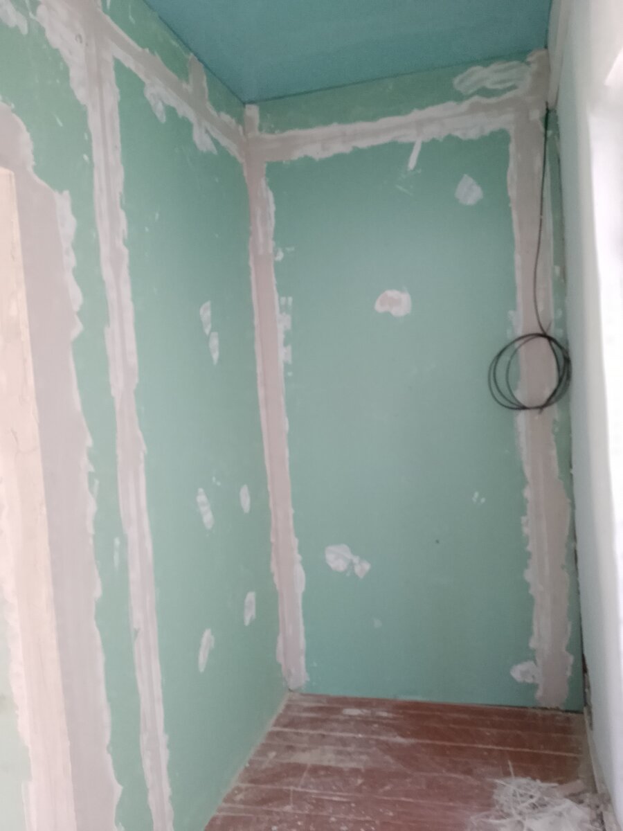 Здравствуйте! Вот и закончил наконец то приклеивать гипсокартон на объекте в одном из Крымских сел. Надеялся прогрунтовать и просто приклеить, но нет, пришлось зачищать. Да и зачищать пришлось местами до самого ракушечника. Планировалось что таким образом сделаем кухню, туалет и прихожую. То есть те стены, что остались от старого дома. Пока сделал только кухню, прихожую в основном доме, и коридор в пристройке. В санузле приклеил на одну стену, она более менее ровная, а штукатурка из глины совсем не большим слоем, зачистил до блока. Ну и все швы зашпаклевал фугенфюллером с серпянкой, высохнет, можно сразу наносить финишную шпатлевку. На остальных стенах вот такая вот штукатурка, то ли из земли, то ли из глины, слоем под четыре сантиметра. На удивление хорошо держится.Если конечно не трогать. Вот и возникает мысль, мы тут покупаем штукатурку по пятьсот рублей за мешок, с фиброй, с добавками, еще и сетку фасадную, штукатурную используем, а деды глиной замазали, побелили и готово,