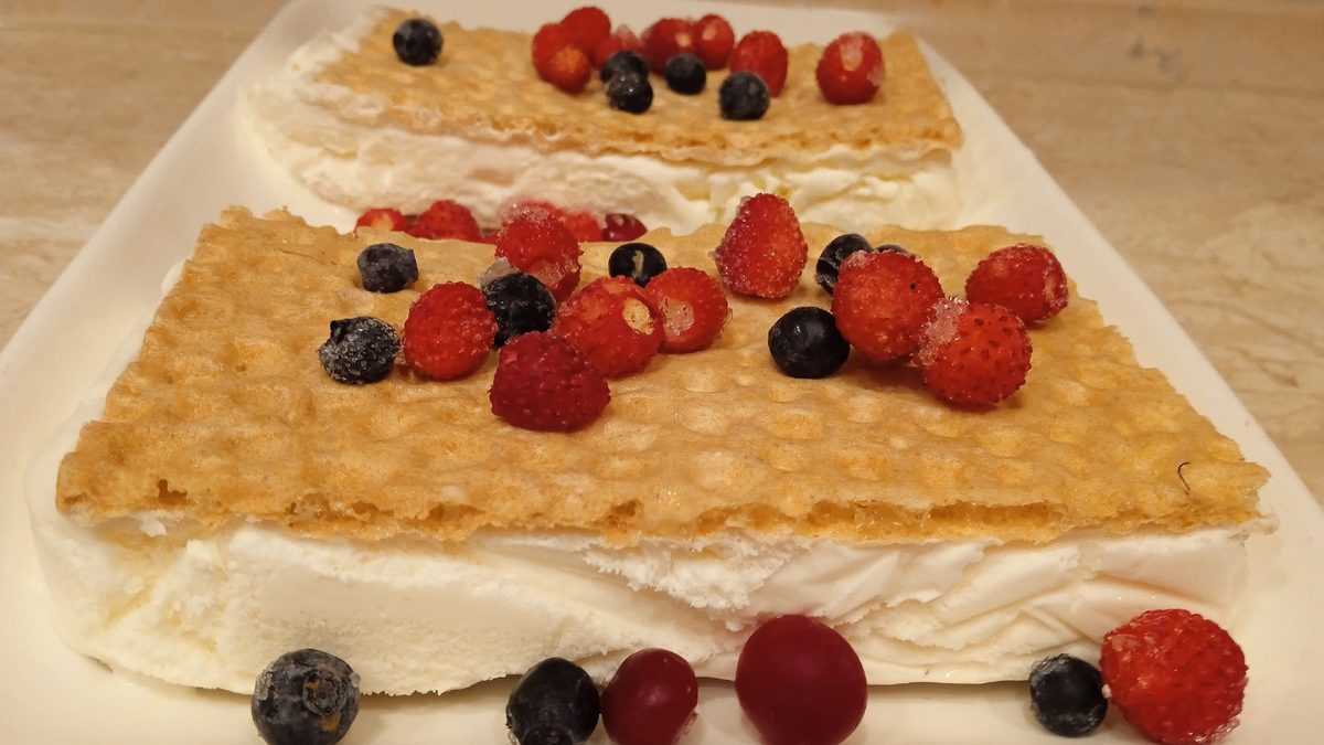 Это простое, но вкусное домашнее лакомство. Приготовить его не составит особого труда. Единственный минус - мороженое очень калорийно (но иногда и в меру побаловать себя можно и даже нужно). Нам понадобится: На заметку: Вместо сгущёнки можно использовать яичные белки (2 шт -взбить до плотных пиков) и сахарную пудру. Мороженое получится лёгким, вкусным и воздушным. Как готовить: Взбить холодные сливки блендером до кремообразной консистенции. Добавить сгущённое молоко и ванилин и аккуратно перемешать. Форму застелить плёнкой, выложить вафельные хлебцы. Равномерно вылить сливочную массу. Сверху снова выложить ряд хлебцов. Накрыть плёнкой или крышкой и отправить в морозилку для застывания на 3 -5 часов. Готовое мороженое разрезать на порции. Наш десерт готов. Приятного аппетита! Если Вам понравился этот рецепт, ставьте лайки, пишите комментарии и не забывайте подписываться на мой канал!