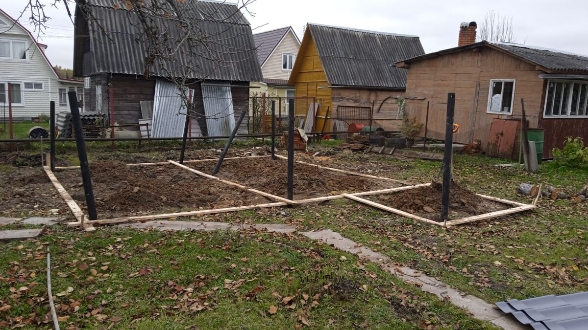 Мы все приняли и дождались наших строителей. Ребята делали все сами от свай до крыши, периодичски просил их присылать фотки. Срок стройки составил 5 дней. Комплектация дома: Фундамент - сваи 14шт; Стены внутри вагонка, снаружи имитация бруса 135мм; Утеплитель 100 мм хотрок стены, пол, потолок. Перегородки внутри дома утеплитель 50мм. Крыша - металлочерепица; Окна - Рехау, двухкамерные стеклопакеты; Пол - шпунтовка. Начало работы Ребята отмерили дом и разметили сваи, дальше раскопали и закрутили их. Дальше вкрутили и сколотили пол: У утру даже уже поставили стены: Затем занялись крышей и тут мне пришло в голову то нужно добавить еще одно окно)