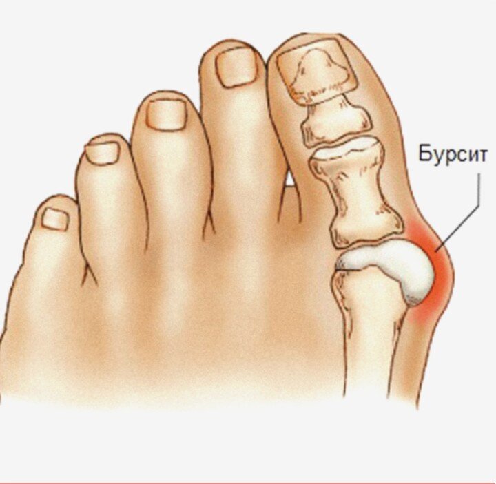 Кроме того, травма или повреждение стопы также может стать причиной бурсита.