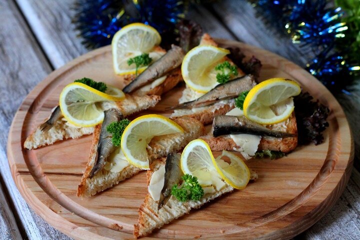 Многие недооценивают важность закусок на столе. Они быстро готовятся, с аппетитом съедаются и прекрасно сочетаются с горячительными напитками. Бутерброды - это всем знакомая классическая закуска на праздничном столе. Вариантов их приготовления невероятное количество и часто у каждой хозяйки они - свои. Бутерброды со шпротами и соленым огурцом Этот вариант закуски является одним из базовых. Для его приготовления понадобится хлеб, банка консервированных шпрот, несколько огурцов, майонез и петрушка. Хлеб режем пополам на узкие прямоугольники или по диагонали - на треугольники для красоты. Намазываем их майонезом, выкладываем сверху шпроты, кружочки огурцов и украшаем зеленью. Обалденные бутерброды со шпротами также получатся, если заменить соленый огурец на свежий. Бутерброды со шпротами и лимоном Такая закуска порадует любителей хрустящих текстур и легкой свежести лимона. Для приготовления понадобится хлеб, шпроты, лимон, зелень, майонез, растительное масло для жарки. Хлеб обжариваем н