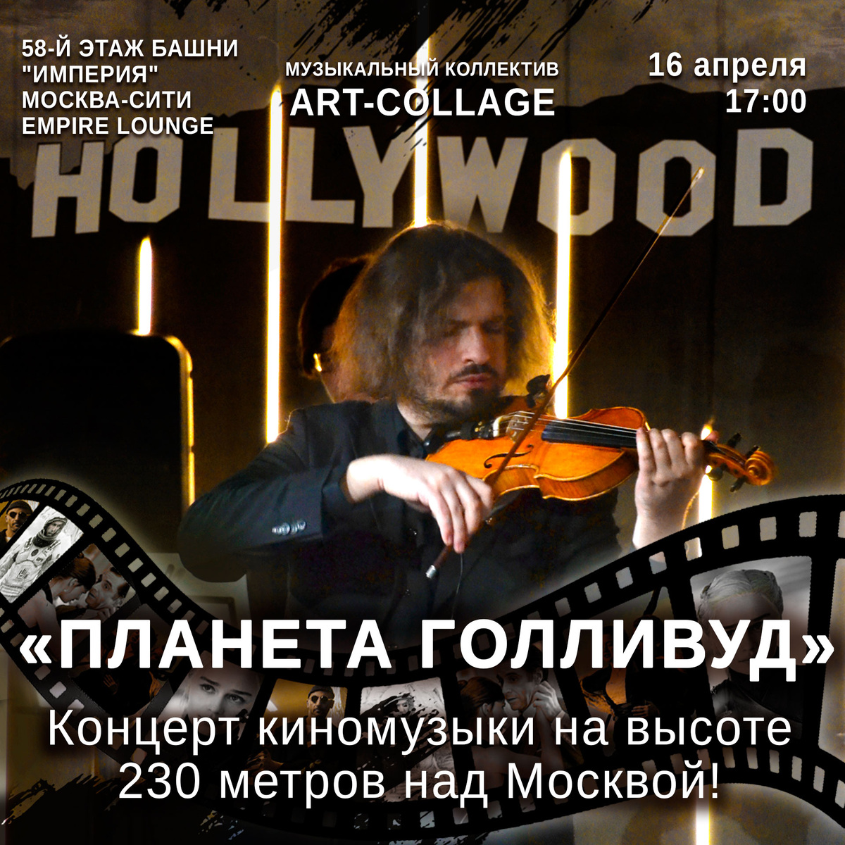 "ПЛАНЕТА ГОЛЛИВУД" - лучшая киномузыка и любимые композиции мирового кинематографа в звучании скрипки, рояля, бас-гитары и перкуссии в исполнении артистов музыкального коллектива "ART-COLLAGE" (Арт-Коллаж).