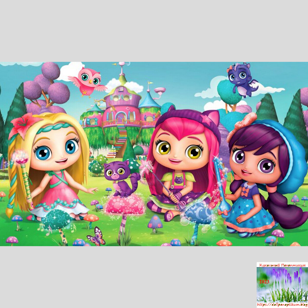 Здравствуйте, дорогие зрители и читатели! Продолжаю перепись КуклоНаселения моего Кукольного Паноптикума. Сегодня под перепись попали куклы: Лаванда-Шарман, название куклы Lavender, производитель Spin-Master, серия Little-Charmers, рост 20 см, цвет темного меда или темный загар, волосы фиолетовые с коричневыми прядями, большие-фиолетовые-глаза, куплена в 2020 Маленькие очаровашки (Little Charmers) - это фирменный CGI-мультфильм, созданный Nelvana и снятый Atomic Cartoons в 2015 году. "Маленькие чаровницы" учат каждого ценить веру в свою собственную магию; уверенность, способности, таланты и самоуважение. Когда их сердце и разум настроены, даже самые трудные задачи становятся возможными. Лаванда персонаж Little Charmers. Она лучшая подруга Хейзел и Пози (Hazel and Posie). У Лаванды оливковая кожа, лавандовые глаза и розовые губы. Ее длинные темно-фиолетовые волосы заплетены в низко завитые косички, скрепленные персиковыми резинками в тон банту с персиковыми блестками, пришитому к ее си