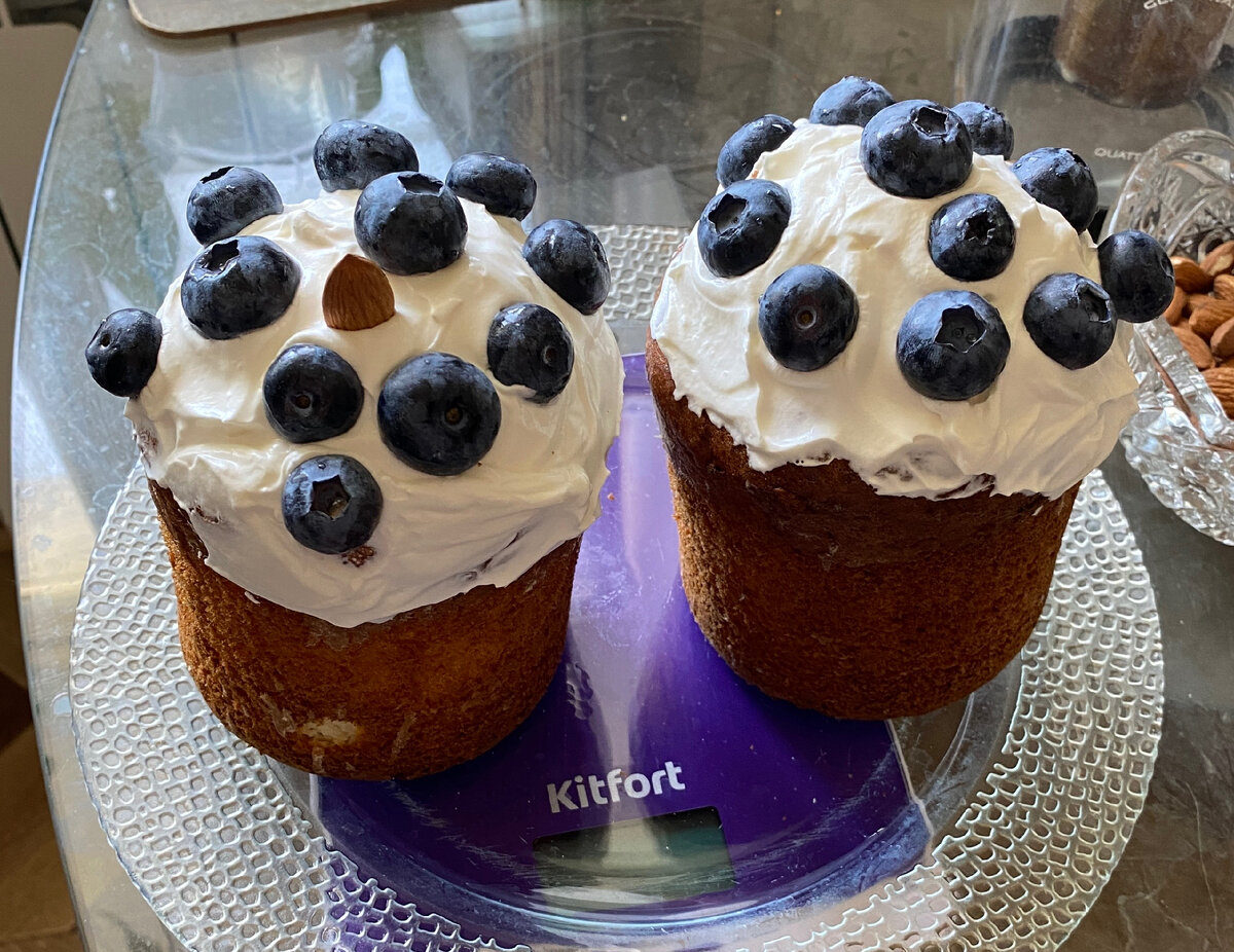 Рецепт Смешать все ингредиенты начиная с жидких и вмешать постепенно сухие. Мы перемешивали миксером до относительно однородной массы. Выложить в форму для кулича или запекания оставив минимум см 3 для поднимания теста, у нас прям существенно поднялось. Выпекать при 180 градусов 50 минут, после выключить духовку и оставить ещё на 10 минут. Дать остыть. Сверху для украшения мы использовали сливки 33% взбитые с сахара заменителем, голубику сверху и любые орехи какие больше нравятся. У нас получилось много крема, так что мы ещё и каждый разрезанный кусочек промазали. Кулич получился сытный, мягкий, воздушный, сладкий. Очень вкусно 🥰 Особенно понравилась цедра апельсина внутри. Благодарю за прочтение статьи! Не забывайте поставить лайк и подписывайтесь на канал, чтобы не пропустить интересные и полезные публикации.
