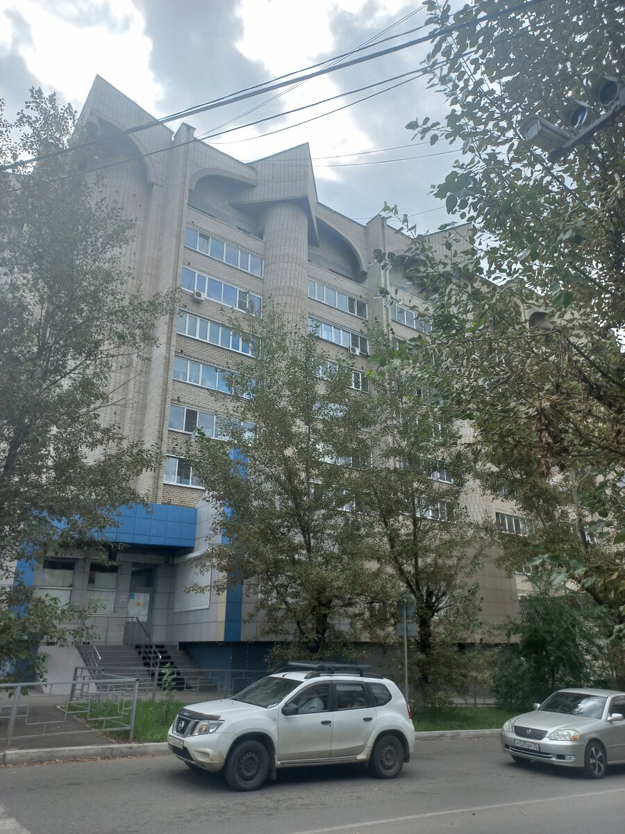 По пути мне встретился удивительный образец модернизма. Как и многие здания в Чите, он облицован светло-серым кирпичом, что, на мой взгляд, не самое лучшее решение. Оно делает здание скучным и невзрачным. Но в случае с домом, про который я рассказываю, большое значение имеет форма. Он имеет колонны, которые завершаются необычными кубическими формами ближе к крыше. При этом интересно, что здание было построено уже после распада СССР, в 1994 году. Видимо, его архитектор еще боялся экспериментировать с другими стилями, отличными от модернизма. Но город от этого ничего не потерял, наоборот, приобрел интересное здание. В общем, лучше это увидеть.