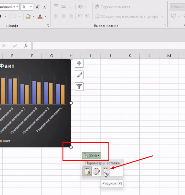 ❎ Справа внизу от диаграммы появиться кнопка контекстного меню "Параметры вставки". Здесь выбираем вставить как "Рисунок" и все готово.