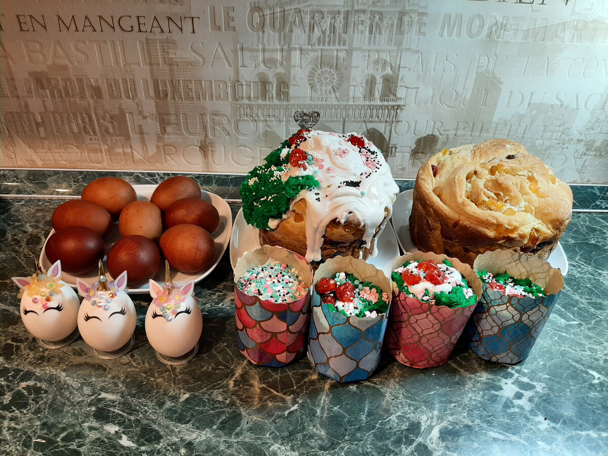 Мы готовы! Пасха ещё в холодильнике. Утром Сима её доукрашала: