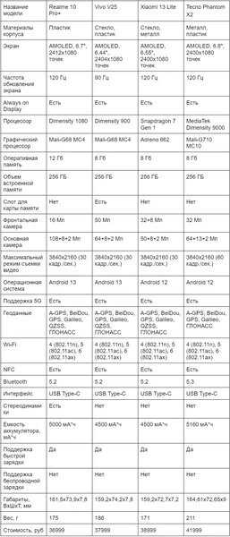 Именно поэтому телефон должен быть сбалансированным. Предположительно, именно такие и выбраны для сравнения. В тесте участвуют: Realme 10 Pro+, Vivo V25, Xiaomi 13 Lite и Tecno Phantom X2.