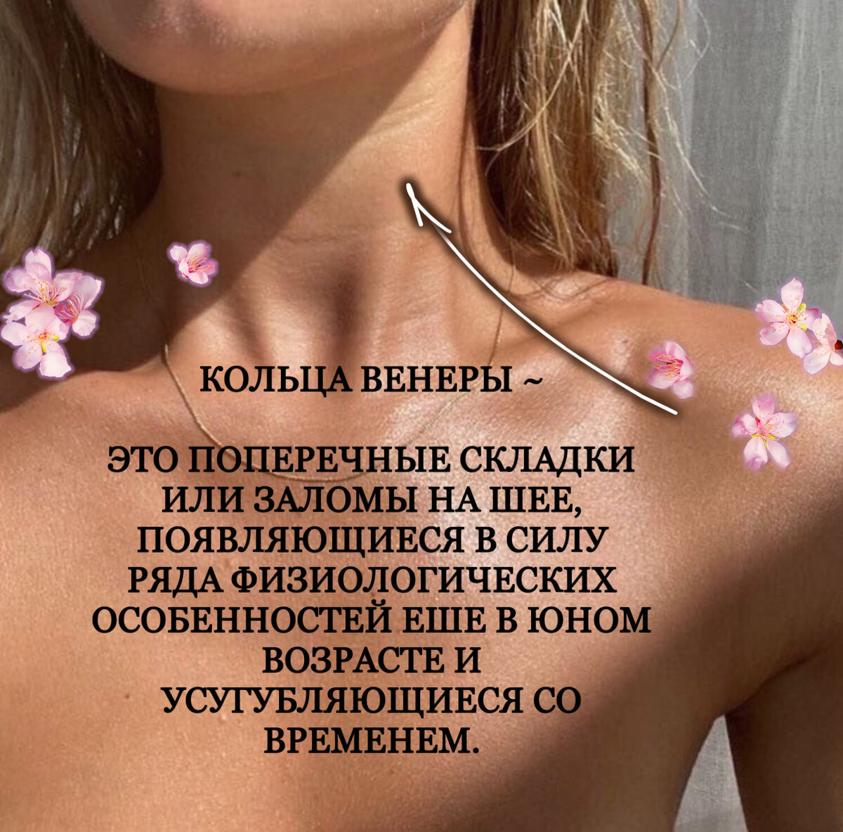КАЧЕСТВЕННЫЙ УХОД ЗА КОЖЕЙ ШЕИ ДОЛЖЕН В ПЕРВУЮ ОЧЕРЕДЬ УКРЕПЛЯТЬ КОЛЛАГЕНОВЫЕ ВОЛОКНА, КОТОРЫЕ ОТВЕЧАЮТ ЗА ПЛОТНОСТЬ КОЖИ. ЧЕМ ПЛОТНЕЕ И КРЕПЧЕ КОЖА, ТЕМ МЕНЬШЕ ПРОЯВЛЯЮТСЯ КОЛЬЦА ВЕНЕРЫ.