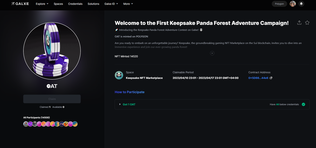 Keepsake NFT Marketplace запускает кампанию на Galxe. Keepsake Panda Forest Adventure Campaign!