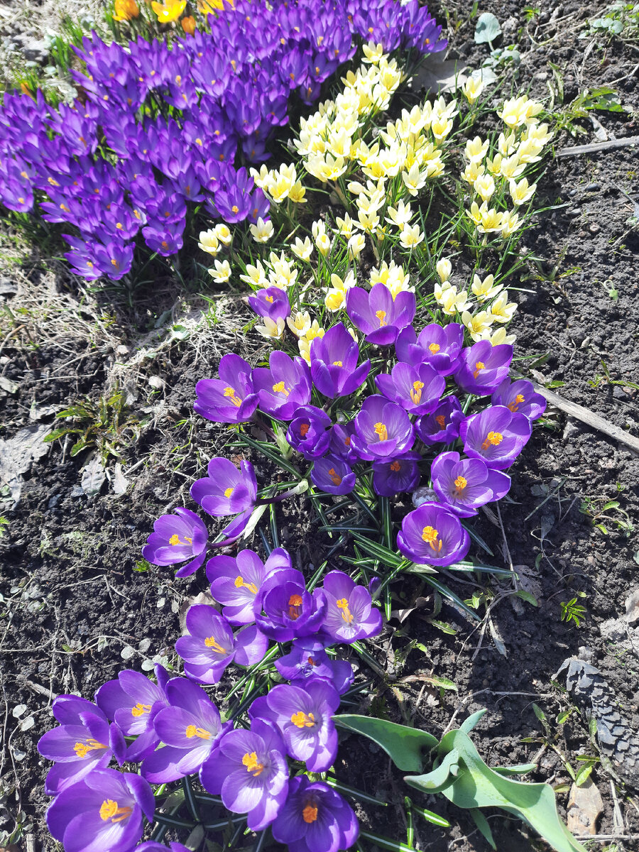 Наша дача очень закрыта с юга высоким лесом. Поэтому снег у нас лежит долго, даже по сравнению с соседними участками, мы самые поздние. Крокусы уже много где отцвели. А вот у нас только начали. Их поддерживают луковичные ирисы Пролески своими синими цветами светят. Всем заглянувшим легкой недели, ярких красок и удачи во всех делах!!!