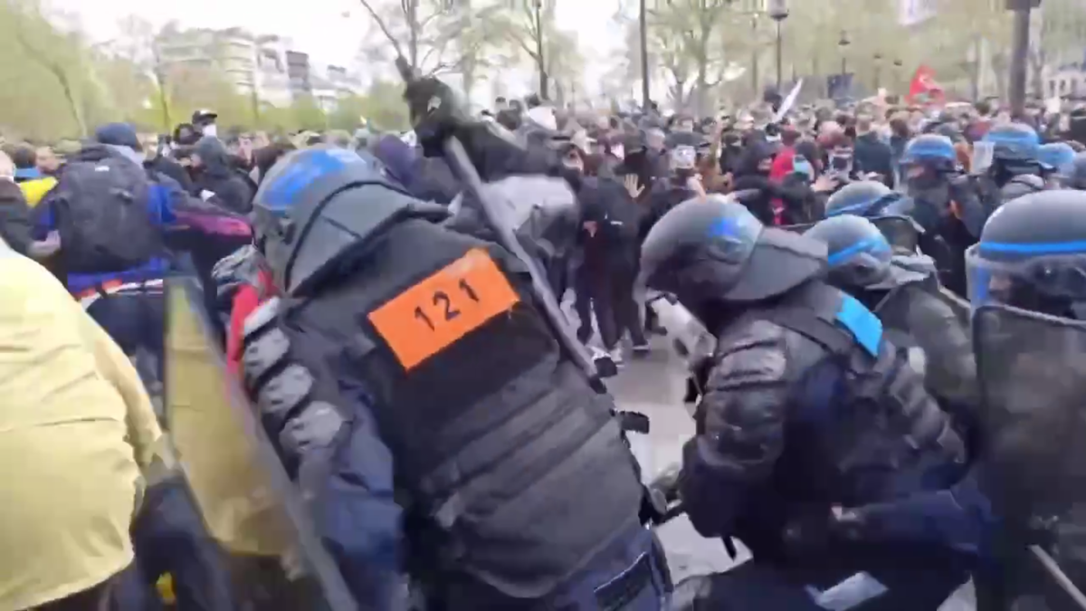 Протестующих с улиц Парижа полиция вытесняет, применяя слезоточивый газ. Люди до сих пор выходят на улицы Парижа. Новая волна протестов нахлынула страну после того как Конституционный совет Франции признал законной пенсионную реформу.