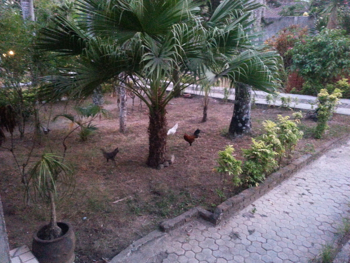 В ходе заграничных путешествий я обычно придерживался метода интенсивной поездки в начале путешествия (типа жесткий Trip), а затем расслабуха в каком-нибудь пляжном месте на несколько дней и возвращение домой. Но в Индонезии у меня так не получилось. Страна огромная, интересных мест много. В итоге я выделил на пляжный отдых всего один день и тот получился скомканным из-за состояния моего здоровья. Семнадцатый день оказался первым за всю поездку, который я провел в одном населенном пункте (хотя формально я жил не на территории пляжного поселка Сенггиги на острове Ломбок, а в деревушке по соседству). Я вернулся в Сенгиги из пятидневного миникруиза на вараний остров Комодо. Разместился в той же гостинице Bumi Aditya, где я провел ночь перед круизом. Шибко устал. Но утром я проснулся опять на рассвете, понаблюдал за петушиными боями между деревенскими и гостиничными петухами. Настроение было упадническое, сказывалось некоторое недомогание. Отправился на завтрак. На ресепшне было неприв