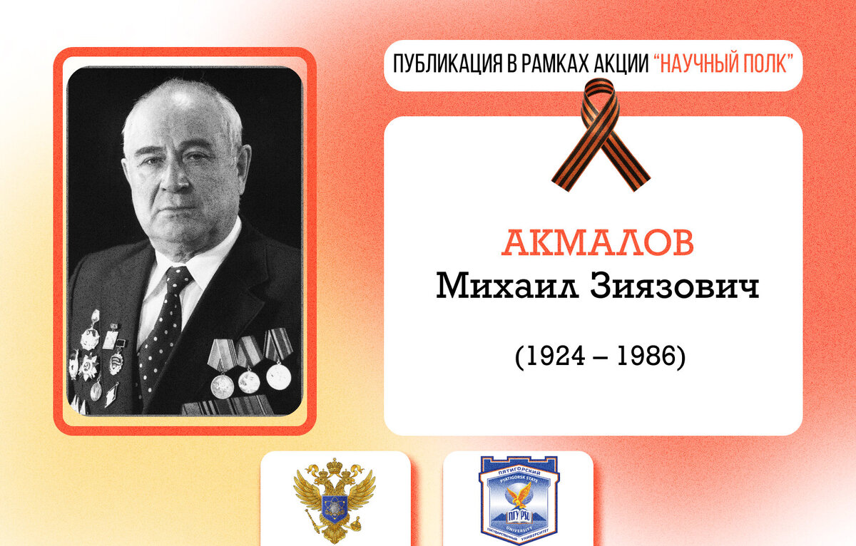 В марте 1942 г. Михаил Акмалов был призван в ряды РККА, стал курсантом общевойскового военно-пехотного училища в г. Гурьеве, по окончании которого в звании лейтенанта командовал ротой пулеметчиков. Был ранен, но в феврале 1945 г. вернулся в строй. Весной 1945 г. вновь был тяжело ранен в ногу; находился на излечении в госпитале в г. Каунасе до конца войны. М.З. Акмалов награжден орденами Отечественной войны II степени, «Боевого Красного знамени»; медалями «За отвагу», «За победу над Германией в Великой Отечественной войне 1941-1945 гг.». С 1962 г. кандидат педагогических наук М.З. Акмалов работает на кафедре педагогики ПГПИИЯ. С 1968 г. он – член экспертной комиссии ЮНЕСКО по образованию. В 1970 г. назначен деканом факультета английского языка. 1971-1975; 1977-1986 гг. – проректор по учебной работе института.М.З. Акмалов награжден знаками «Победитель социалистического соревнования», «Ветеран труда».