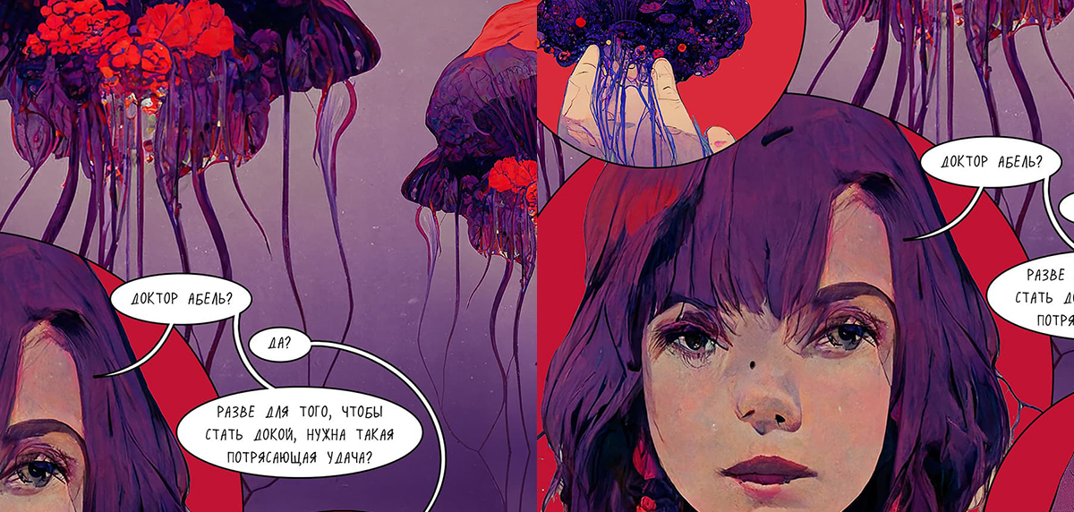 Художник, иллюстратор и писатель Софья Мироедова прошлой осенью опубликовала на Rideró свой графический роман «Гипнопедия». Это один из первых комиксов, выполненных в соавторстве с нейросетями.