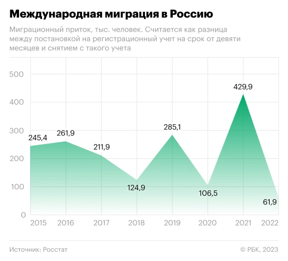 По данным Росстата, с января по август в стране наблюдался отрицательный рост числа мигрантов: приехали почти 444 тысячи, а уехали — свыше 506 тысяч. То есть миграционный отток составил 62,5 тысячи человек. Такого не было даже в экономически сложных коронавирусных 2020 и 2021 годах.