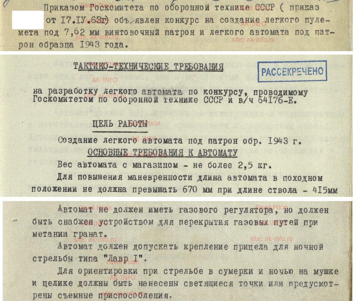 17 апреля 1963 г., спустя 4 и 2 года после принятия на вооружение АКМ и ПК соответственно, приказом Госкомитета по оборонной технике СССР объявлен конкурс на создание легкого пулемета и легкого автомата. ТТТ на автомат выглядели необычно, помимо всего прочего: По легкому пулемету "хотелки" были тоже любопытные: Сравнительные полигонные испытания опытных образцов должны были быть закончены до 1964 года. Победитель конкурсов поощрялся премией в 5000 руб. Выявить победителя автоматного конкурса помешал... 5,6 мм патрон. Под который и трансформировался конкурс. А вот победителем пулеметного конкурса стал Михаил Тимофеевич с ПКМ. Никто из участников конкурса не выполнил все ТТТ, хотя на 1964 год только Ижмаш представил следующие образцы: автомат, спроектированный по схеме автоматики с длинным ходом ствола, ЛА-4, автомат, спроектированный по схеме автоматики с газоотводным устройством, ЛА-2, пулемет 6П6Л. Источник: ak-info