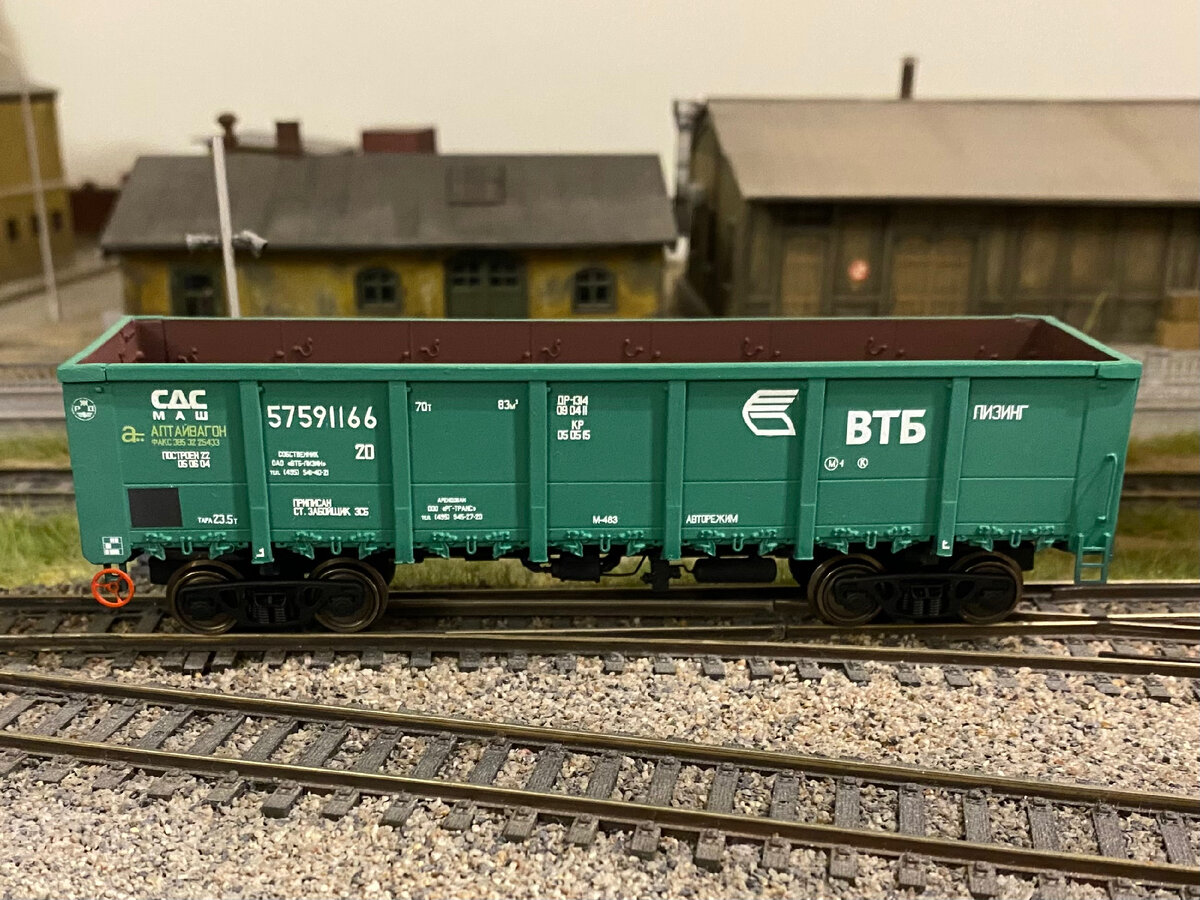 Модель полувагона 12-296-01, построенная из набора для самостоятельной сборки производства Павла Андреева в масштабе 1:87 Аналогичная модель в такой же окраске с номером 55670681 уже была опубликована на канале ранее: Еще одна похожая модель в окраске ДВТГ также была опубликована недавно: Все три модели строились в разное время, с промежутком в пару месяцев, но между собой они мало чем отличаются. Список доработок практически такой же, как и для любых других моделей полувагонов: латунные поручни и воздушные магистрали, металлические колесные пары, сцепки. Ранее мы писали, что модели полувагонов 12-296-01 выпускал Р-ланд, а киты этих вагонов в свое время выпустил Павел Андреев. К сожалению выпуск моделей полувагонов 12-296-01 компанией Р-ланд прекращен и сейчас магазин Роколенд продает остатки, среди которых моделей ВТБ-лизинг уже не значится. Павел Андреев (Karelian Models), выпустивший в свое время партию китов для этого вагона, также прекратил их выпускать. Поэтому, к сожалению, по
