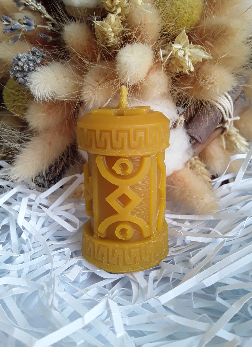 1. Русские руны, запакованные в пчелином воске, надёжно хранят свою секретную информации. Но, в момент активации свечи, информационные потоки русских рун легко и мощно излучаются из магической свечи, пронизывая вас своим полем и наполняя вас своей энергией. С помощью этой свечи можно безболезненно вернуть сознание в спокойное состояние после сильной ссоры, испытанного гнева, чувства страха или пережитого испуга. А также получить помощь в проявлении твердости духа в решении вопросов или возникающих конфликтных ситуаций. Свеча может быть использована для коррекции самочувствия, настроения, событий. Руны способствуют гармонизации жизни в целом и привлечению благоприятных обстоятельств. Свеча состоит из 4-х Русских рун, подобранных по авторской формуле. В верхней части свечи двойная руна «Ключ». Время горения 3-4 часа, может изменяться в зависимости от внешних условий, и от сложности ситуации, с которой работает свеча. Вместе со свечой прилагается подробная инструкция по её применени