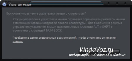 Нажимать нужно именно левые Alt и Shift. С правыми этого не получится. В результате у Вас должно выйти такое вот окошко: где жмем Да и режим управления указателя мыши с помощью клавиатуры будет активирован.