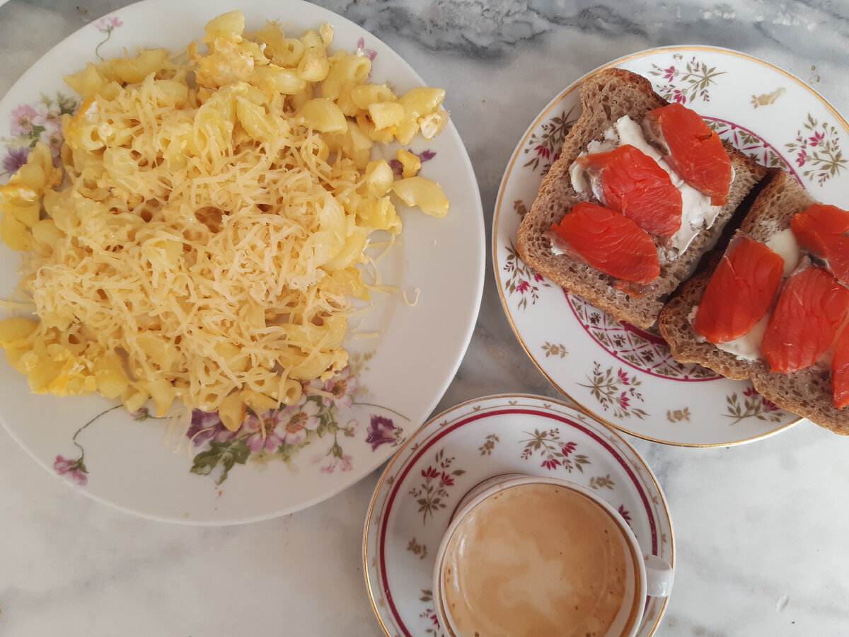 В мае продолжаем питаться экономно и вкусно на небольшую сумму. О запасах на начало месяца и расчете суммы на питание можно узнать ЗДЕСЬ Все рецепты можно найти в КАТАЛОГЕ РЕЦЕПТОВ На завтрак у нас сегодня макароны с яйцом и сыром, бутерброды с неркой, манник с изюмом и апельсиновой цедрой (пекла в мультиварке вчера вечером). Макароны вчера варила на обед, и сварила сразу больше, на 2 раза. С утра только обжарила их с яйцом и посыпала тертым сыром. Манник приготовила на остатках кефира и ряженки из холодильника. Все рецепты будут в конце статьи. Так что сегодня завтрак тоже сборный и практически готов. На обед потушила филе трески с помидорами под сыром. И салат из свеклы с голубым сыром и соусом наршараб. Филе трески покупала в Светофоре После обеда еще чашечка кофе с вафлей (наконец-то появились в Светофоре в продаже) На ужин сварила на курином бульоне зеленые щи (у меня была в морозилке свекольная ботва), к ним обязательно вареное яйцо. И еще оставалась треска с обеда. Меню в эт