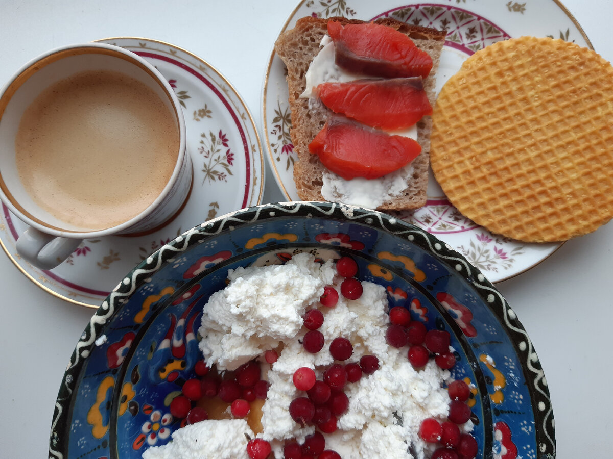 В мае продолжаем питаться экономно и вкусно на небольшую сумму. О запасах на начало месяца и расчете суммы на питание можно узнать ЗДЕСЬ Все рецепты можно найти в КАТАЛОГЕ РЕЦЕПТОВ Завтрак сегодня самый простой, какой только может быть - творог с медом и ягодами, вафля с карамелью и бутерброд с неркой. Я уезжала в Москву, в 6.30 уже вышла из дома. Так что подгадала, чтобы завтрак был быстрым. С собой брала кофе, грушу, сушеные бананы, шоколадку. Обед у меня был готов: щи зеленые (с ботвой свеклы) с вареным яйцом и треска. Сын гулял с собакой днем и собрал мне такой солнечный букет. Трогательно до слез! После обеда - чашка кофе с вафлей🤦♀️ На ужин сварила говяжий язык. Покупала его в Смарте. К языку - картофельное пюре. И открыла баночку ассорти из огурцов и помидоров. Меню в прошлые годы: