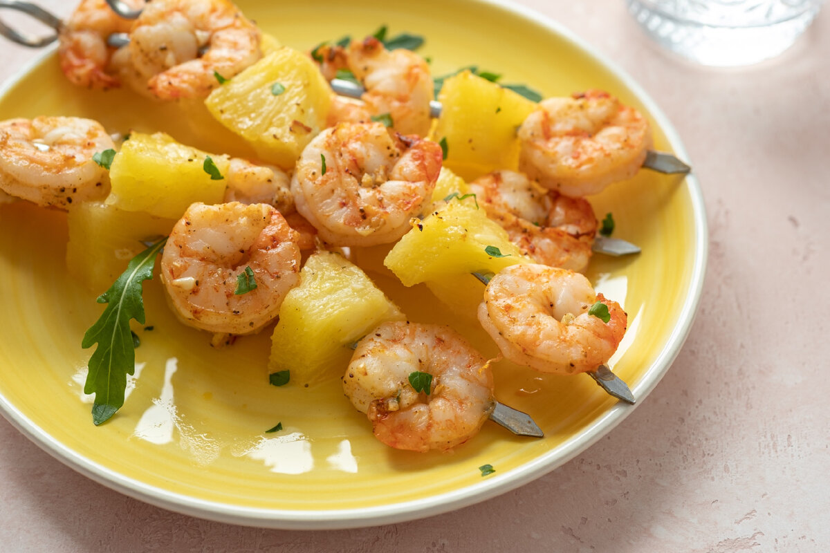 Пикник на пляже: Шашлыке из креветок с ананасами и сладким соусом терияки