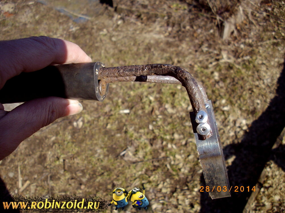 Статья лежит не на месте, просто потому что сейчас наша Юля из молодёжки подарила мне свой прежний телефон и я уже который день в нём учусь. А ещё потому что этот вид плоскореза я тогда практически только что придумал. Сваял той весной, сикось-накось, поскольку время уже поджимало да и слесарки под рукой не было... Сработана была эта штукенция из металлического прутка с прорезями
