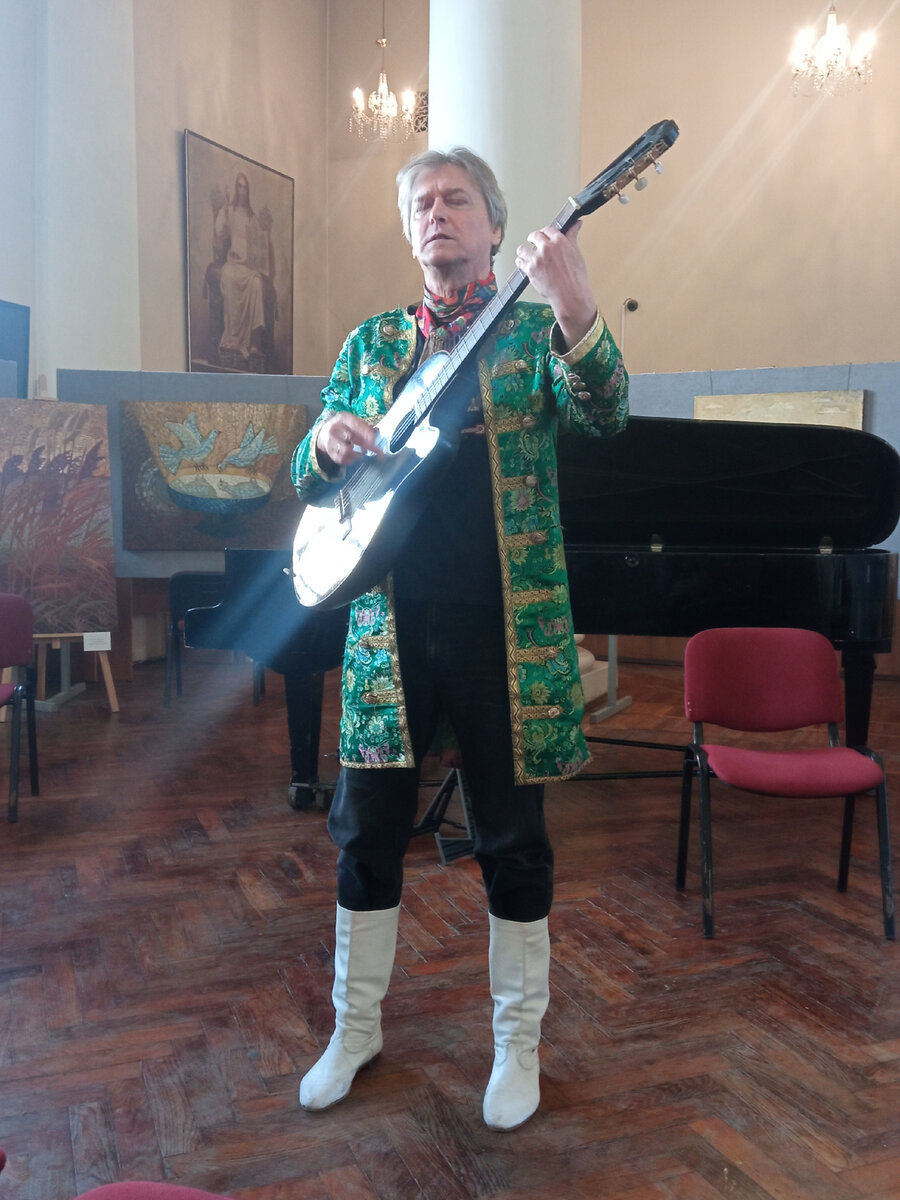Побывал на великолепном моно-спектакле "Евгений Онегин 200 лет спустя" в исполнении Владимира Щукина. Спектакль прошёл в знаковом для русской культуре месте - в притворе Храма Святой мученицы Татианы на Большой Никитской. В основу спектакля "Евгений Онегин 200 лет спустя" легли поэма Александра Сергеевича Пушкина и романсы на стихи поэтов 18 и 19 веков - Василия Капниста, Евгения Баратынского, Василия Жуковского, Михаила Лермонтова, Льва Мея и других. Романсы звучат удивительно современно, многие из них по-настоящему "рок-н-рольные". Не стоит забывать про то, что Владимир Щукин в прошлом был лидером рок-группы «Последний шанс». Для того, чтобы герой 19 века Евгений Онегин стал нашим современником Владимиру Всеволодовичу вполне достаточно футболки с принтом под старинным камзолом и нескольких современных приемов игры на гитаре. И очень жаль, что этот спектакль состоялся при практически полном отсутствии какой-либо информации о грядущем событии. Я узнал о нем из личной ст