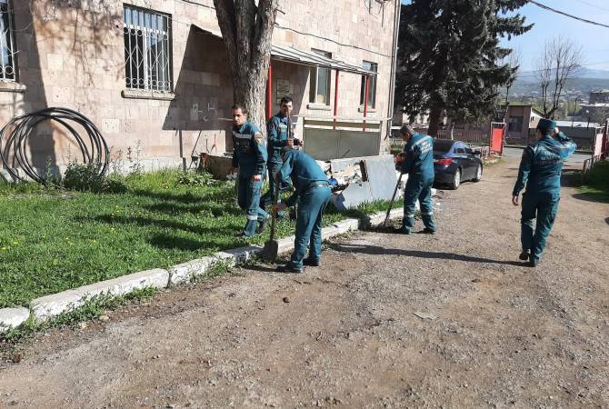 Все подразделения Спасательной службы Министерства внутренних дел Республики Армения 29 апреля присоединились к общегосударственному субботнику. Спасатели провели работы по очистке, благоустройству и стирке административных зданий Спасательной службы и прилегающих территорий: очистили дворы, дороги и площадки у зданий. Как сообщили Арменпресс в службе, директор Спасательной службы - заместитель министра внутренних дел, полковник Спасательной службы К. Цуцулян и заместители директора осмотрели территории. 110 спасателей из подразделений Ереванского управления Спасательной службы МВД были вовлечены в работы по очистке труднодоступных территорий, предусмотренных административными районами города Еревана. С помощью пожарно-спасательной техники были осуществлены также работы по отмыванию ряда памятников. Активные работы осуществлены также областными подразделениями Спасательной службы МВД Вайоц Дзора, Арарата, Гегаркуника, Армавира, Тавуша, Арагацотна, Котайка, Ширака, Лори и Сюника в общ